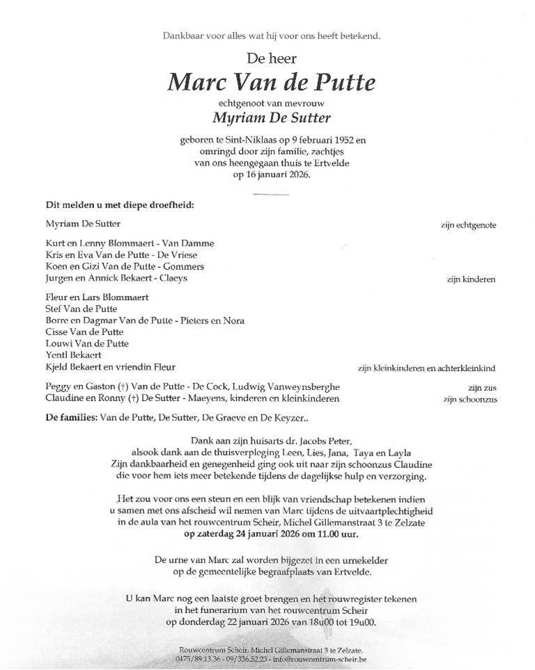 Onze oprechte deelneming bij het overlijden van Marc.