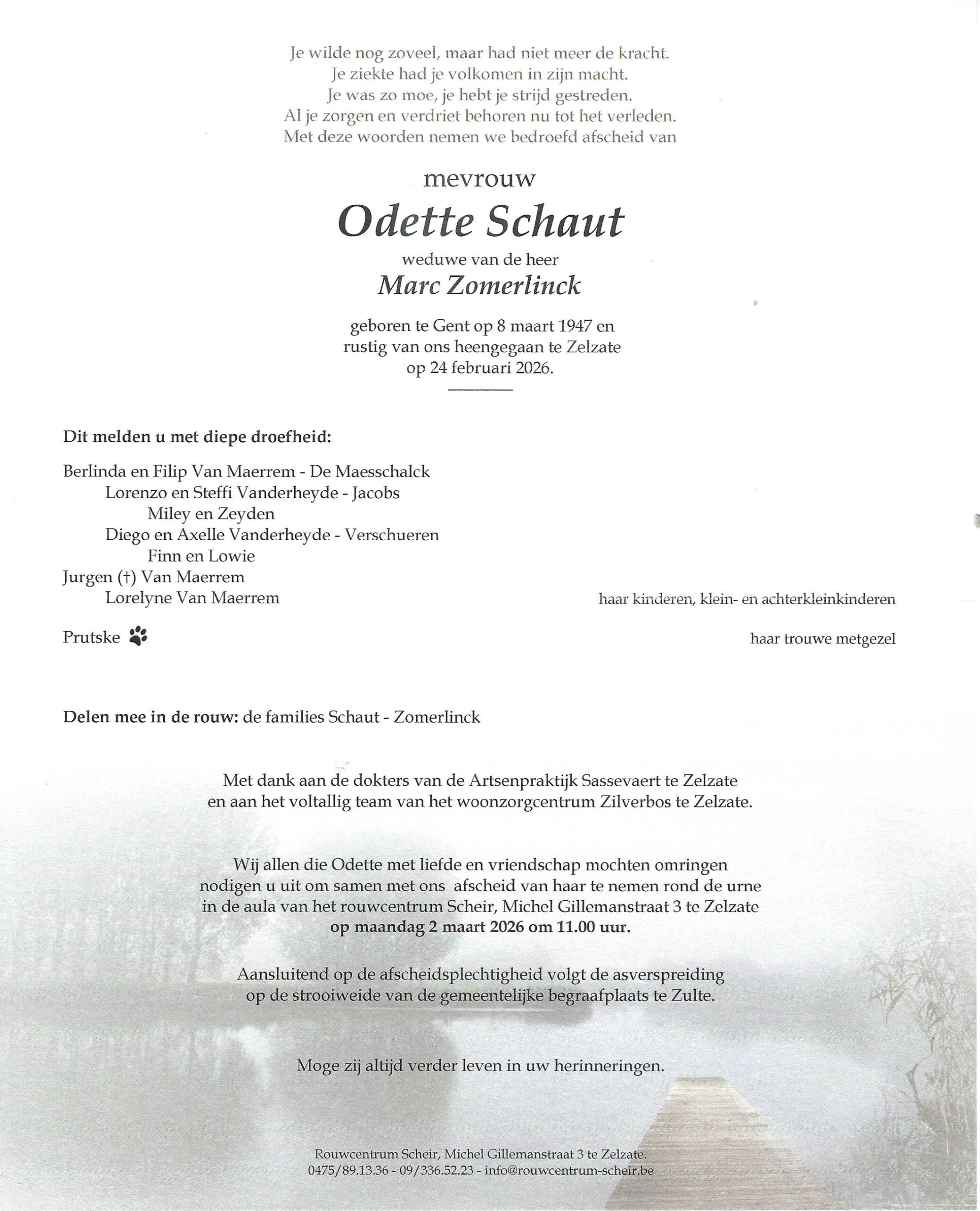 Onze innige deelneming en veel sterkte bij het overgaan van Odette