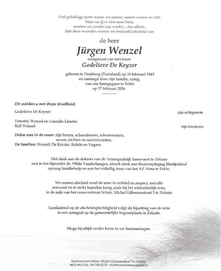 Ons oprecht medeleven bij het overlijden van Jürgen.